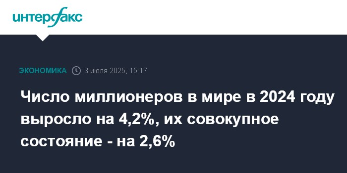 Число миллионеров в мире в 2024 году выросло на 4,2%, их совокупное состояние - на 2,6%
