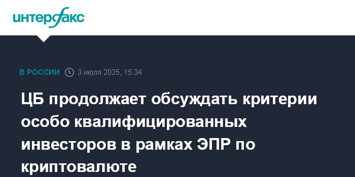 ЦБ продолжает обсуждать критерии особо квалифицированных инвесторов в рамках ЭПР по криптовалюте