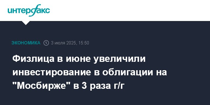 Физлица в июне увеличили инвестирование в облигации на "Мосбирже" в 3 раза г/г