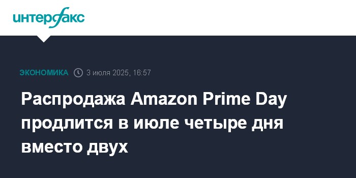 Москва. 3 июля. INTERFAX.RU - Amazon.com Inc. в 2025 году будет проводить распродажу Prime Day четыре дня вместо обычных двух - с 8 по 11 июля.