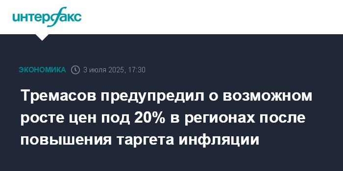 Тремасов предупредил о возможном росте цен под 20% в регионах после повышения таргета инфляции