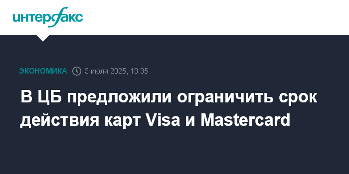 Москва. 3 июля. INTERFAX.RU - В ЦБ РФ сообщили, что предлагается ограничивать сроки действия карт, выпущенных платежными системами, которые не входят в специальный реестр Банка России. На данный момент среди исключенных из реестра систем есть Visa и Mastercard.