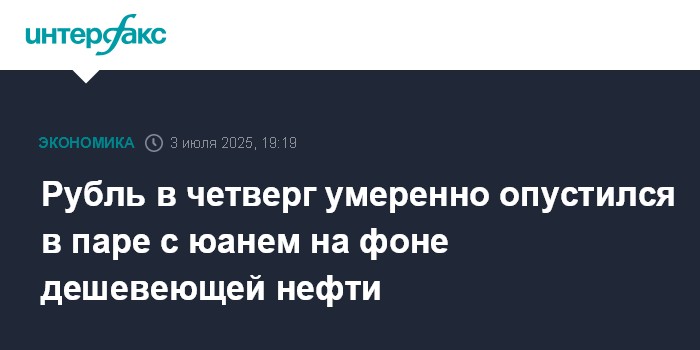 Рубль в четверг умеренно опустился в паре с юанем на фоне дешевеющей нефти