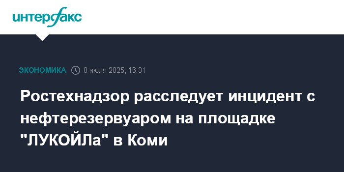 Ростехнадзор расследует инцидент с нефтерезервуаром на площадке "ЛУКОЙЛа" в Коми