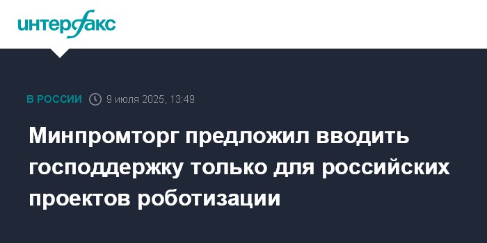 Минпромторг предложил вводить господдержку только для российских проектов роботизации