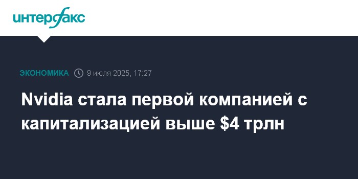 Nvidia стала первой компанией с капитализацией выше $4 трлн