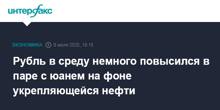 Москва. 9 июля. INTERFAX.RU - Китайский юань слегка опустился на Московской бирже по итогам торгов в среду, рубль немного укрепился на фоне позитивной динамики цен на нефть. Курс китайской валюты в 19:00 по Москве составил 10,8375 руб., что на 1,75 коп. ниже уровня закрытия предыдущих торгов.