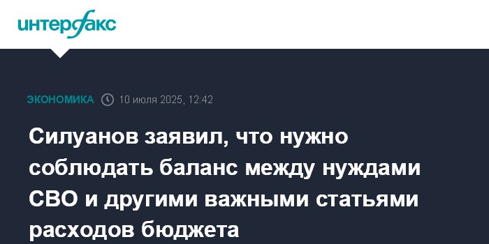 Москва. 10 июля. INTERFAX.RU - Реализация целей специальной военной операции по-прежнему является одним из приоритетов при определении расходов федерального бюджета, однако при подготовке проекта на ближайшую трехлетку необходимо соблюдать баланс и с другими ключевыми направлениями, заявил журналистам министр финансов РФ Антон Силуанов.
