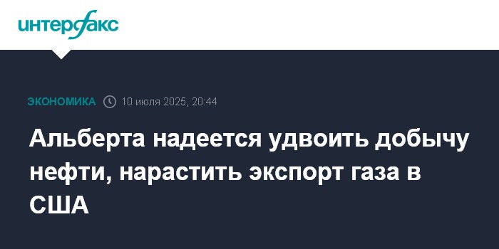 Альберта надеется удвоить добычу нефти, нарастить экспорт газа в США