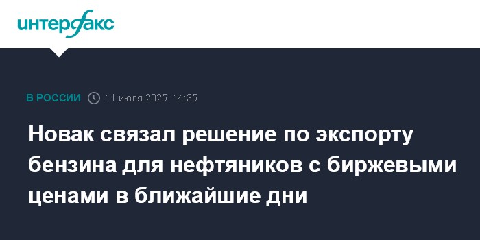 Новак связал решение по экспорту бензина для нефтяников с биржевыми ценами в ближайшие дни