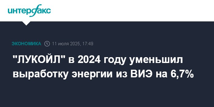 Москва. 11 июля. INTERFAX.RU - ПАО "ЛУКОЙЛ" в 2024 году уменьшило по сравнению с 2023 годом выработку энергии от возобновляемых источников(ВИЭ) на 6,7%, сообщается в отчете об устойчивом развитии компании.