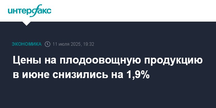 Цены на плодоовощную продукцию в июне снизились на 1,9%