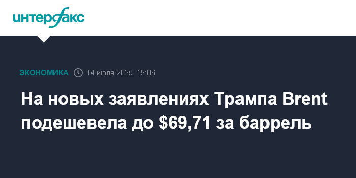 После заявлений Трампа цены на Brent опускались до $69,33 за баррель, а на WTI - до $67,26 за баррель. Участники рынка ожидали от президента США более жестких мер, а заявление о 50-дневной отсрочке оказало давление на котировки, отмечает Trading Economics.