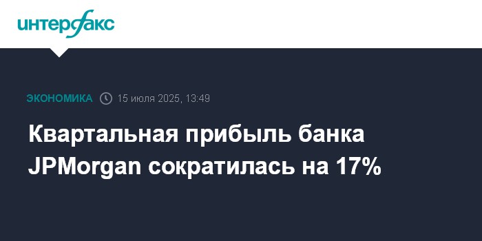 Москва. 15 июля. INTERFAX.RU - JPMorgan Chase & Co., крупнейший банк США по объему активов, сократил чистую прибыль во втором квартале 2025 года на 17%, выручку - на 11%.