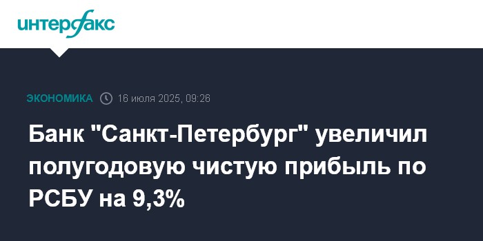 Банк "Санкт-Петербург" увеличил полугодовую чистую прибыль по РСБУ на 9,3%