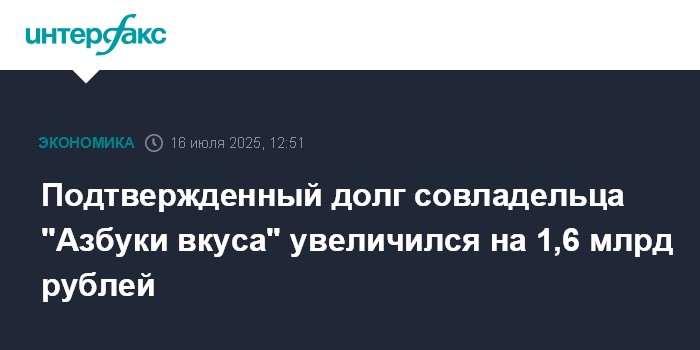 Подтвержденный долг совладельца "Азбуки вкуса" увеличился на 1,6 млрд рублей