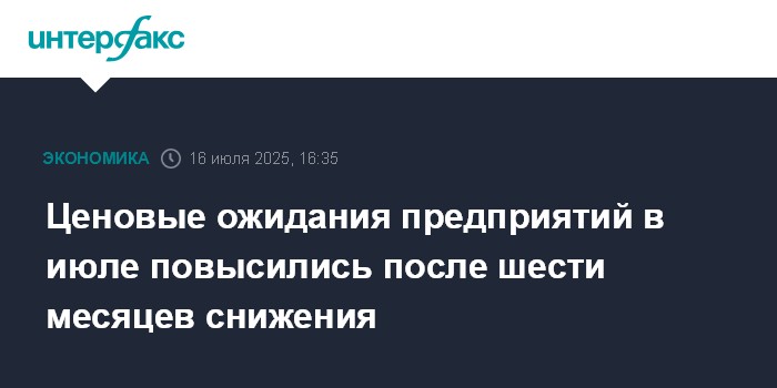 Ценовые ожидания предприятий в июле повысились после шести месяцев снижения