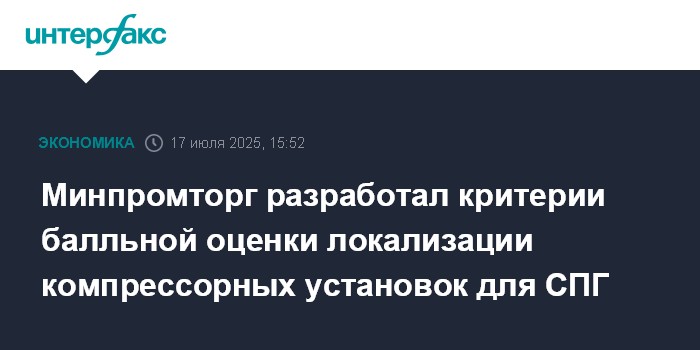 Минпромторг разработал критерии балльной оценки локализации компрессорных установок для СПГ