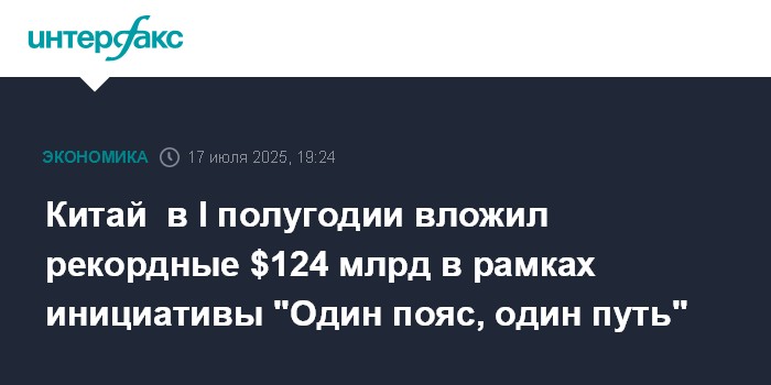 Москва. 17 июля. INTERFAX.RU - Китайские компании за шесть месяцев 2025 года заключили контракты со странами-участницами инициативы "Один пояс, один путь" на рекордную сумму в $124 млрд, что превысило общий показатель за весь 2024 год ($122 млрд), по данным исследования австралийского Университета Гриффита и Пекинского центра зеленого финансирования и развития.
