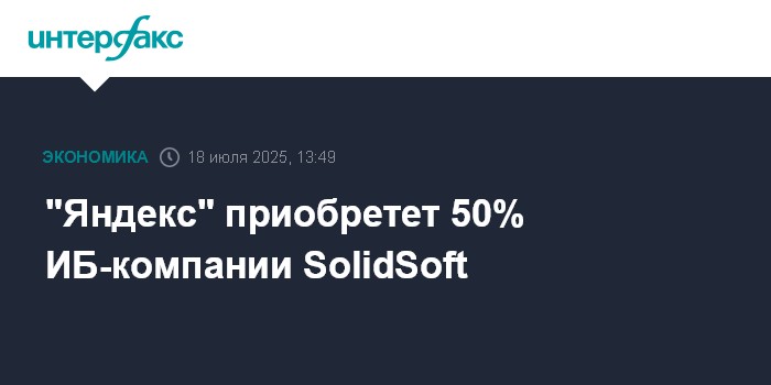 "Яндекс" приобретет 50% ИБ-компании SolidSoft