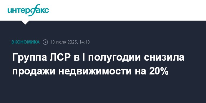 Москва. 18 июля. INTERFAX.RU - ПАО "Группа ЛСР" в январе-июне 2025 года сократило продажи недвижимости на 19,8% в годовом измерении, до 69 млрд рублей, сообщила компания.