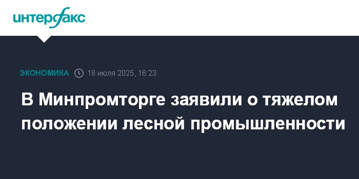 Москва. 18 июля. INTERFAX.RU - На предприятиях лесопромышленного комплекса России в первом полугодии 2025 года производство снизилось от 2% до 10% в зависимости от вида продукции, в целом ситуацию в отрасли можно охарактеризовать как тяжелую, заявил замглавы Минпромторга Михаил Юрин на заседании совета по развитию лесного комплекса при Совете Федерации.