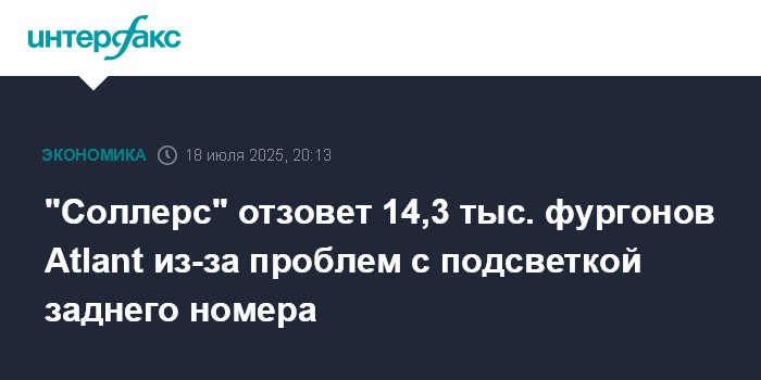 Москва. 18 июля. INTERFAX.RU - Российская автомобилестроительная группа "Соллерс" объявила об отзыве 14,346 тыс. цельнометаллических фургонов Sollers Atlant для устранения риска короткого замыкания в системе подсветки заднего номерного знака, сообщила пресс-служба автопроизводителя.