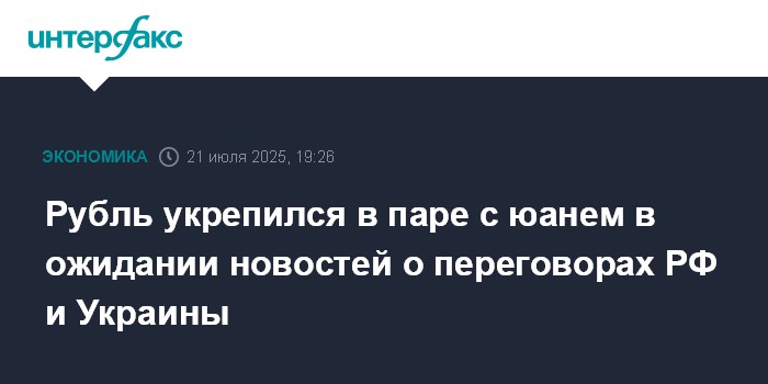 Москва. 21 июля. INTERFAX.RU - Китайский юань упал на Московской бирже по итогам торгов в понедельник. Рубль вырос в ожидании новостей о третьем раунде прямых переговоров между российской и украинской делегациями, который может состояться в Стамбуле уже на этой неделе.
