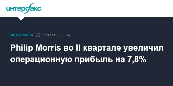 Москва. 22 июля. INTERFAX.RU - Табачный концерн Philip Morris International увеличил операционную прибыль и выручку во втором квартале 2025 года, при этом скорректированная прибыль оказалась лучше прогнозов рынка, а выручка - хуже.
