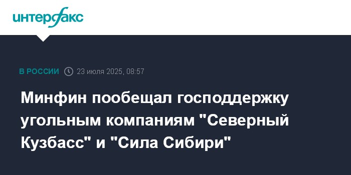 Минфин пообещал господдержку угольным компаниям "Северный Кузбасс" и "Сила Сибири"