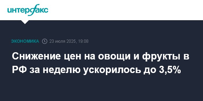 Снижение цен на овощи и фрукты в РФ за неделю ускорилось до 3,5%