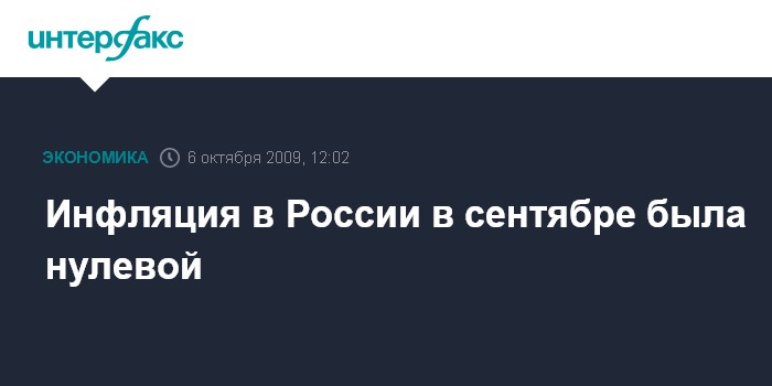 Москва. 6 октября. INTERFAX.RU – Инфляция в России в сентябре 2009 г., как и в августе, была нулевой после роста по 0,6% в месяц в мае-июле 2009 г., сообщила во вторник Федеральная служба государственной статистики (Росстат).
