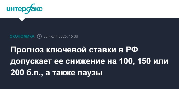 Прогноз ключевой ставки в РФ допускает ее снижение на 100, 150 или 200 б.п., а также паузы