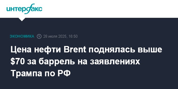 Цена нефти Brent поднялась выше $70 за баррель на заявлениях Трампа по РФ