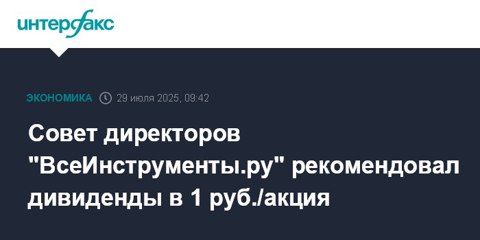 Совет директоров "ВсеИнструменты.ру" рекомендовал дивиденды в 1 руб./акция