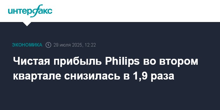 Москва. 29 июля. INTERFAX.RU - Нидерландская Royal Philips NV, выпускающая потребительские товары и медицинское оборудование, сократила чистую прибыль во втором квартале 2025 года в 1,9 раза из-за единовременных факторов, однако показатель превысил ожидания рынка.