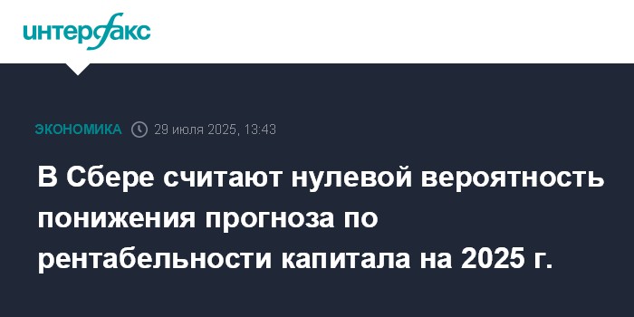 Москва. 29 июля. INTERFAX.RU - Сбер оценивает вероятность понижения прогноза по рентабельности капитала (ROE) на 2025 год на нулевом уровне, рассчитывает заработать больше чистой прибыли, чем в 2024 году, заявил зампред правления, финансовый директор Сбербанка Тарас Скворцов на конференц-звонке.
