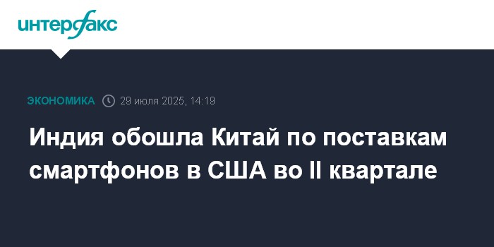 Индия обошла Китай по поставкам смартфонов в США во II квартале