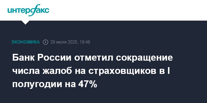 Банк России отметил сокращение числа жалоб на страховщиков в I полугодии на 47%