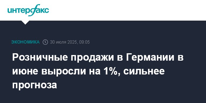 Розничные продажи в Германии в июне выросли на 1%, сильнее прогноза