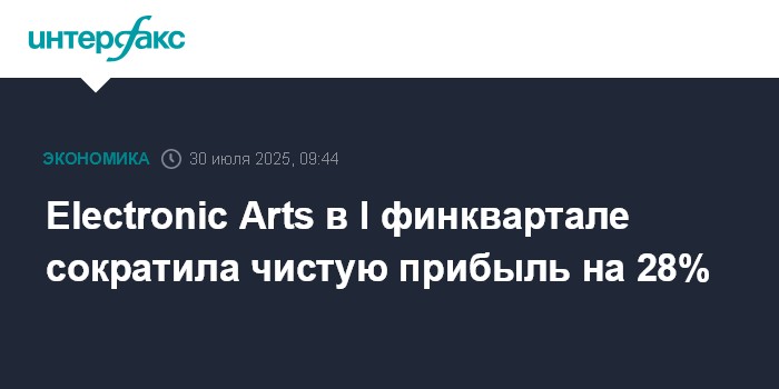 Москва. 30 июля. INTERFAX.RU - Американская Electronic Arts, один из ведущих разработчиков компьютерных игр в мире, сократила чистую прибыль на 28,2% в первом квартале 2026 финансового года, при этом объем заказов превзошел ожидания аналитиков.