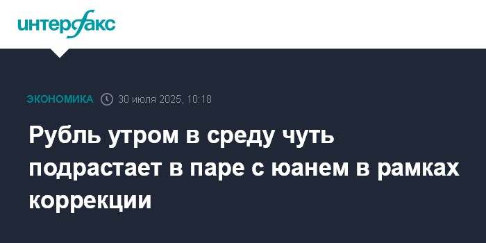 Москва. 30 июля. INTERFAX.RU - Китайский юань слегка снижается на Московской бирже в среду утром; рубль подрастает на внутреннем валютном рынке в рамках коррекции после заметного падения в предыдущие несколько дней, происходившего под давлением как существующих геополитических и санкционных рисков, так и вследствие снижения ключевой ставки ЦБ РФ на заседании 25 июля.