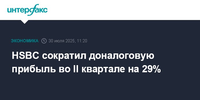 HSBC сократил доналоговую прибыль во II квартале на 29%