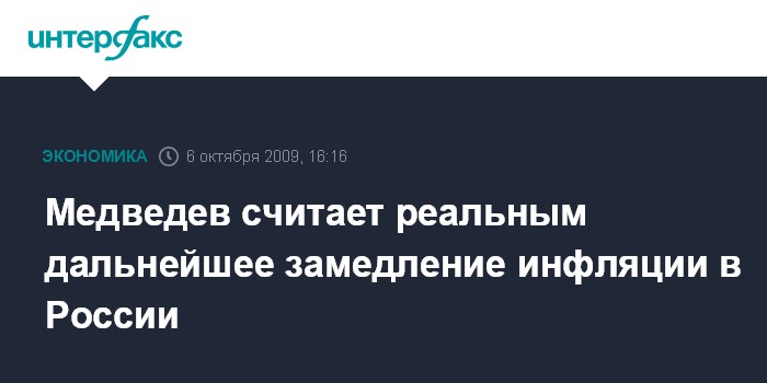 Москва. 6 октября. INTERFAX.RU - Президент РФ Дмитрий Медведев считает возможным добиться еще более низких темпов инфляции в стране.
