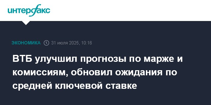 ВТБ улучшил прогнозы по марже и комиссиям, обновил ожидания по средней ключевой ставке