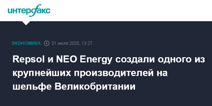 Москва. 31 июля. INTERFAX.RU - Структура испанской Repsol - Repsol Resources UK завершила слияние с независимым оператором в Великобритании NEO Energy.