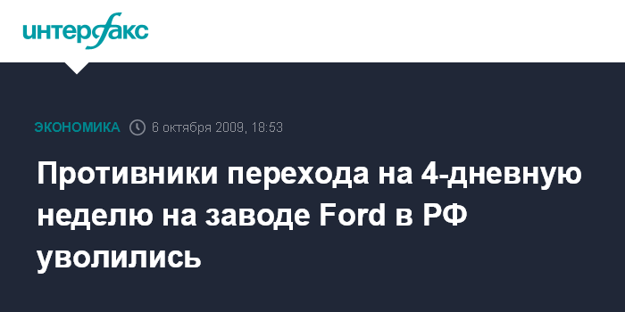 Противники перехода на 4-дневную неделю на заводе Ford в РФ уволились