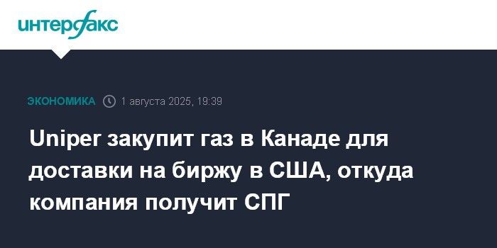 Uniper закупит газ в Канаде для доставки на биржу в США, откуда компания получит СПГ