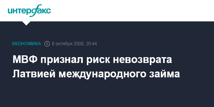 Рига. 6 октября. INTERFAX.RU - Существует риск того, что Латвия не сумеет вернуть международный заем, говорится в докладе первой отчетной миссии Международного валютного фонда (МВФ) в Латвии.