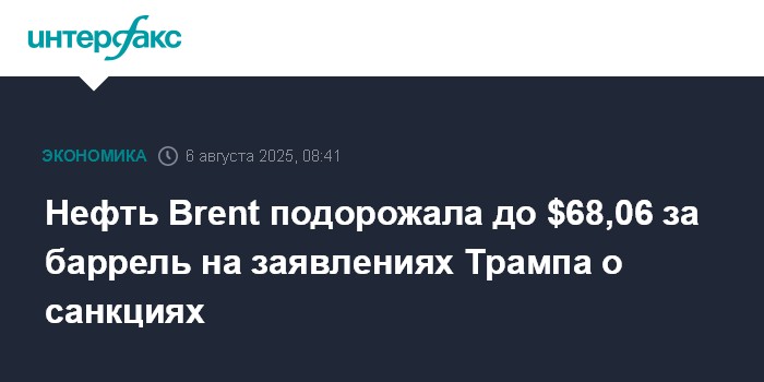 Нефть Brent подорожала до $68,06 за баррель на заявлениях Трампа о санкциях